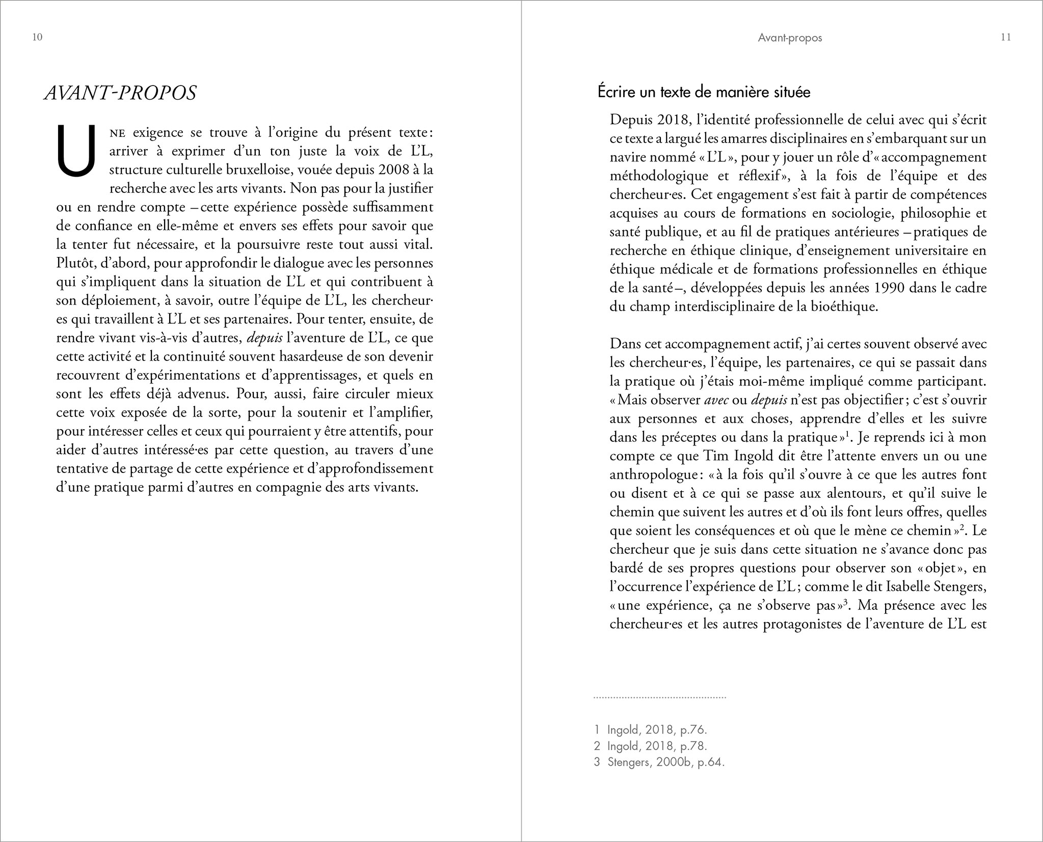 Les lecteurs et lectrices ne trouveront pas ici l’exposé conceptuel d’une recherche menée sur L’L. Pas plus une analyse détaillée, sous forme de bilan, de ce qui s’y est passé depuis que j’y suis embarqué. Ni un témoignage, ni un récit d’expérience ou d’enquête, encore moins un manuel d’outils participatifs. Ni un livre théorique, ni un essai, ni un texte qui renvoie à une pratique de terrain, ni un ouvrage subjectif ou poétique. Plutôt un écrit hybride, essayant de s’imprégner de la force qui émane du processus inventif de L’L, espérant de la sorte augmenter sa puissance. »